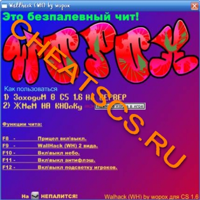 wh by worox - не палиться на Steam. Данный чит был выпущен не давно и так в будущем будет улучаться. С помощью данного чита вы сможете отключить та включить небо, включить подствеку играков, а так же выключить