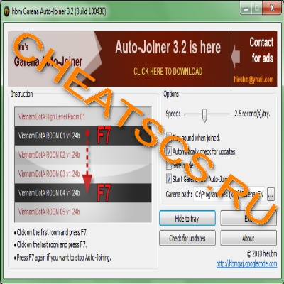 ![]() GarenaHack 5,28 - последней версии, доступнa Эта новая версия просто работает для обновления новой Garena, она не имеет никаких новых средств в cqccyh. |